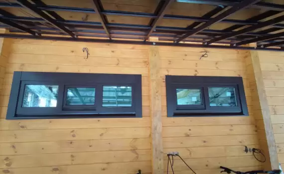 В деревянный дом установлены окна в количестве 10 штук. Окна тёплые с двойным стеклопакетом. Тип открывания створок распашной. Установка заняла 5 дней, окна монтировались в обсадные коробки.