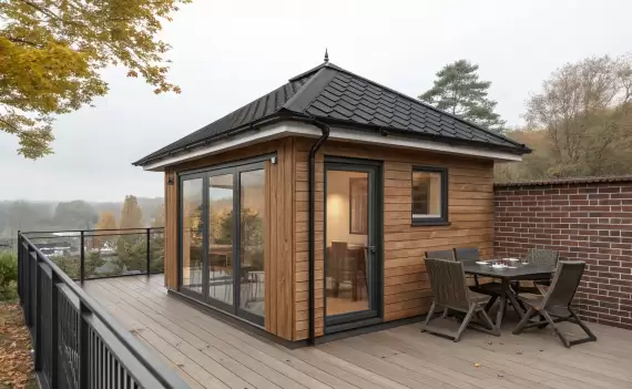 Для этой компактной, но стильной беседки на террасе мы выполнили полутёплое остекление с использованием тёплого алюминиевого профиля с термовставкой. Смонтированы панорамные раздвижные окна и стеклянная дверь, что визуально увеличивает пространство и обеспечивает отличную защиту от ветра и осадков. Подходит для весенне-осенней эксплуатации.